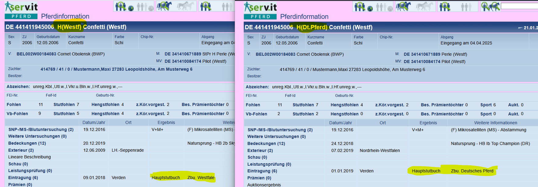 Das bedeutet, auch für Warmblutverbände ändert sich die Logik zur Anzeige und Ausgabe von Stuteninformationen an diversen Stellen, z.B. im Passdruck! Eine Übersicht der Änderungen ist ab hier zu finden.