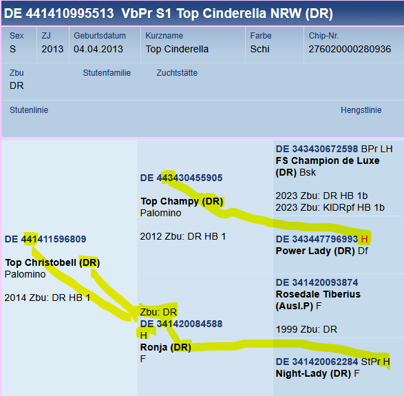 z.B. in der Verbandspedigreesicht ab der 2. Vorfahrengeneration (MM, VM)
