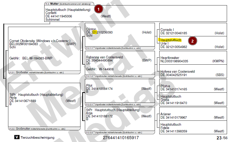 Relevant sind Verbands-Stutbucheintragungen der Mutter, die folgenden Vorgaben entsprechen: