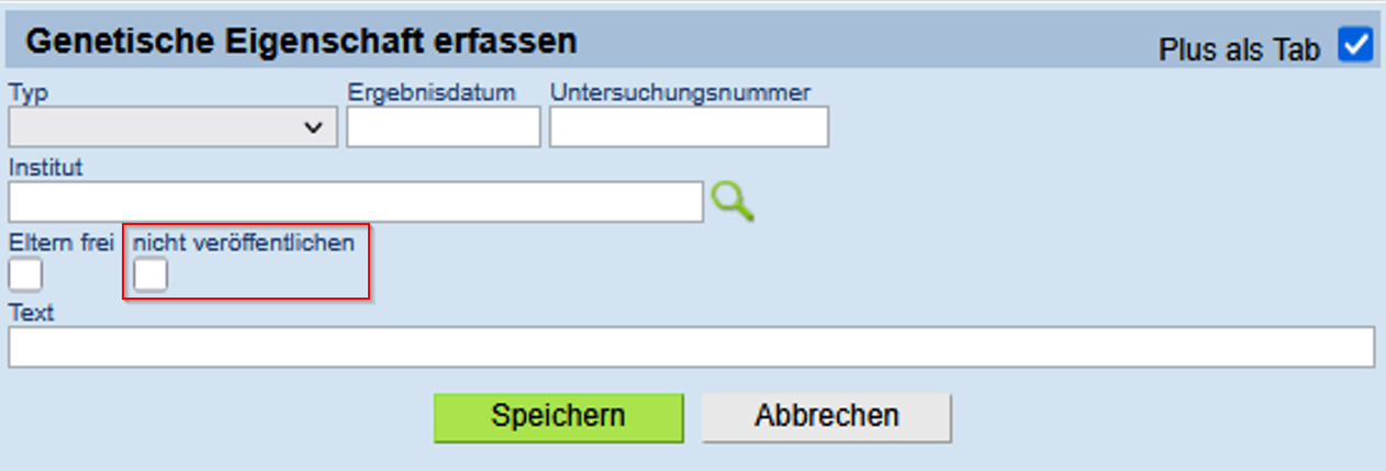 Durch die Konfiguration ist es zukünftig theoretisch möglich alle Ergebnisse die unter 'Weitere Untersuchungen' erfasst sind in HVP, EQ-Pass und ZüchterOnline anzeigen zu lassen.Damit bestimmte Einzelergebnisse von dieser Funktion ausgeschlossen werden können gibt es ab sofort das Kennzeichen 'Veröffentlichung' am Ergebnis. Dieses kann durch den Verband, der das Ergebnis beauftragt bzw. erfasst hat bearbeitet werden.