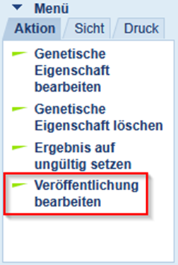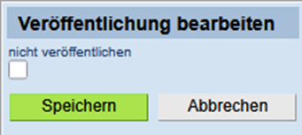 Oder beim Aufruf der Detailsicht des Ergebnisses unter 'Aktionen' aufgerufen werden. Wählt man 'Veröffentlichung bearbeiten' aus öffnet sich ein Fenster in dem lediglich der Haken gesetzt oder entfernt werden kann.