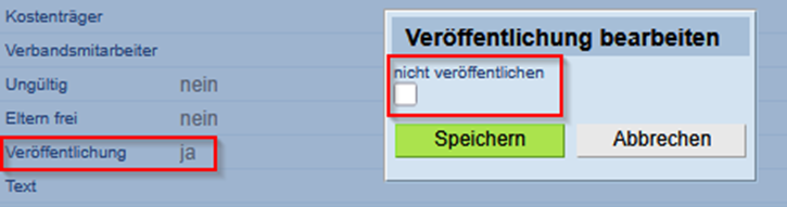 Welchen Status die Veröffentlichung am Ergebnis hat, kann in der Detailtsicht geprüft werden. Dort wird 'Veröffentlichung' = ja oder nein angezeigt.