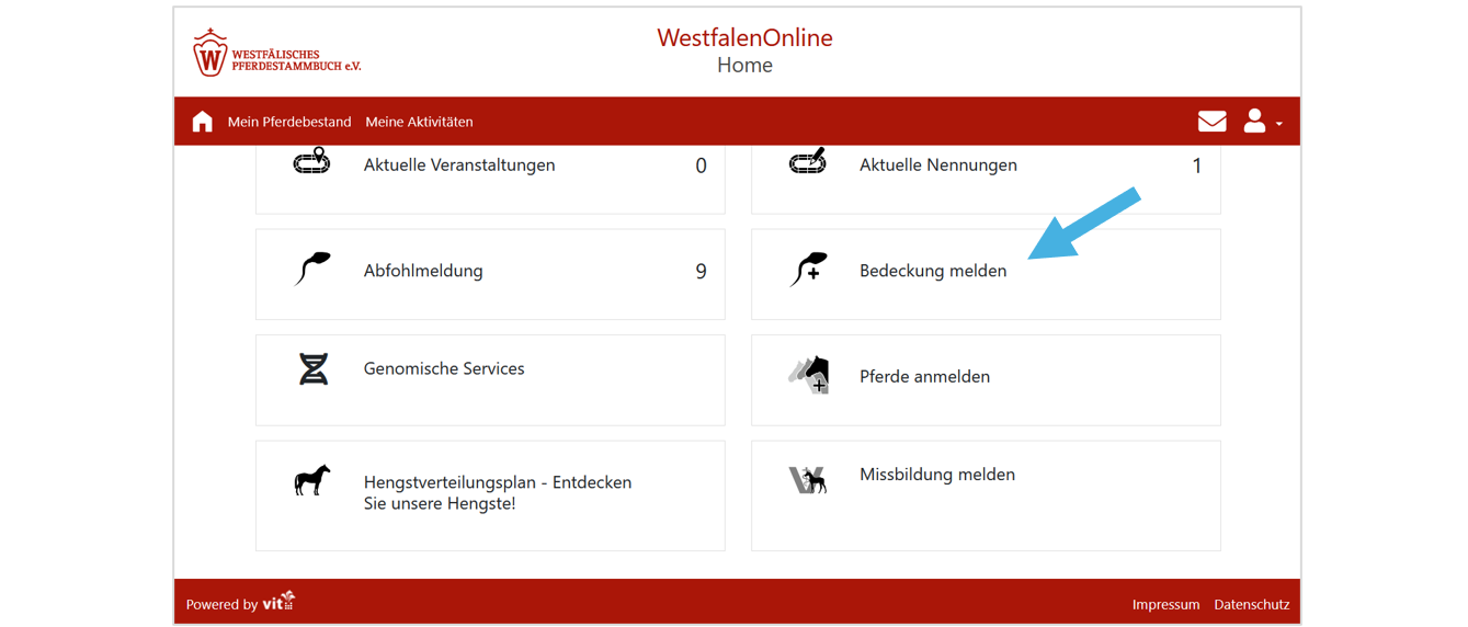 In ZüchterOnline haben WebBenutzer die Möglichkeit Bedeckungen online an den Zuchtverband zu melden. Sichten aus serv.it PFERD sind hier zu finden.