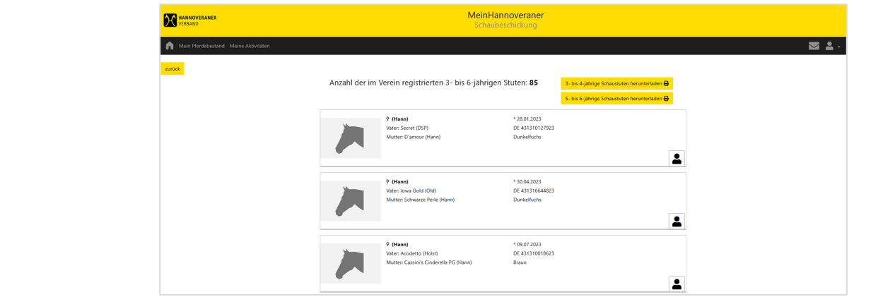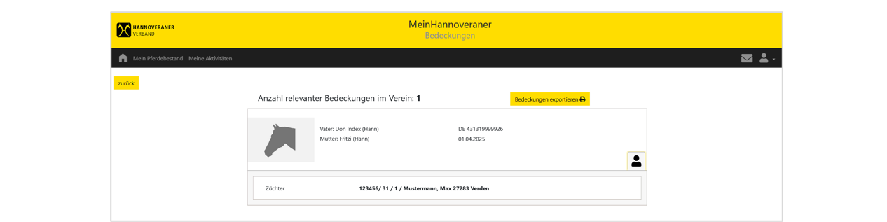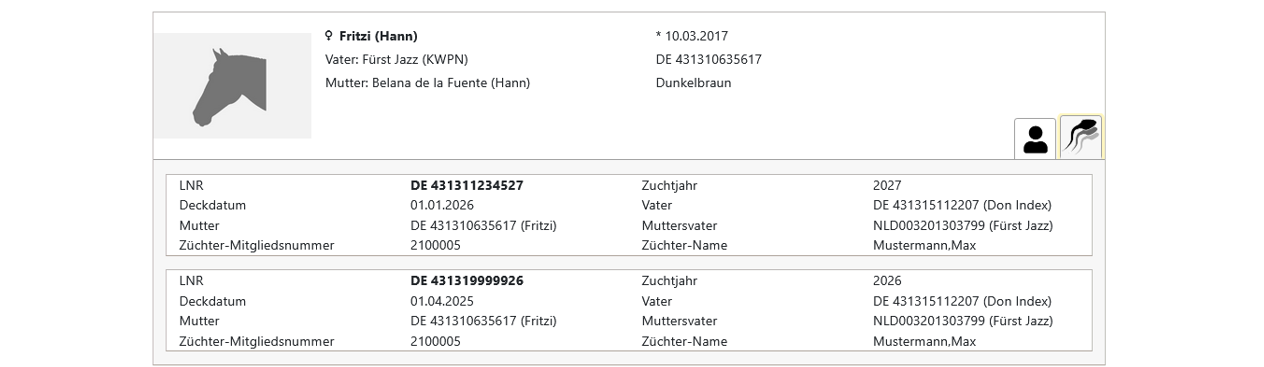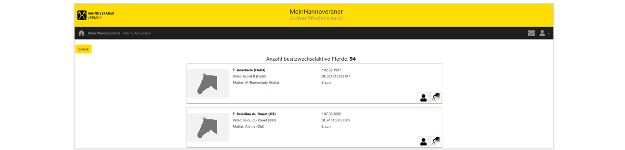 Register „Aktiver Zuchtpferdebestand“