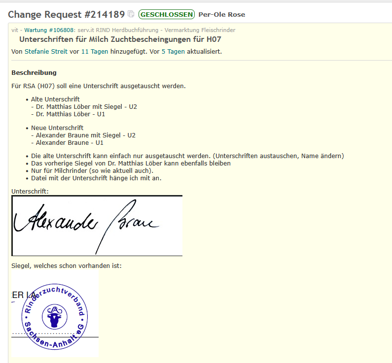 Wenn eine Unterschift geändert werden soll, dann muss man bei den Druckern ein Ticket erstellen, was ungefähr so aussieht https://redmine.vit.de/issues/214189